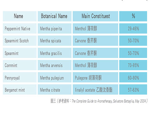 以下這些精油都曾被以「Peppermint薄荷」為產品名稱銷售,但以下這些薄荷的化學組成有很多不同的地方,芳療師治療之前瞭解清楚你手上所拿的薄荷是哪一種,對於治療效果甚為關鍵。