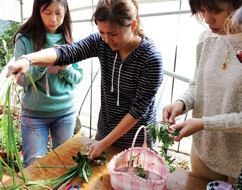 學員們用手觸摸香草的專注神情,就是這麼單純而愉悅。