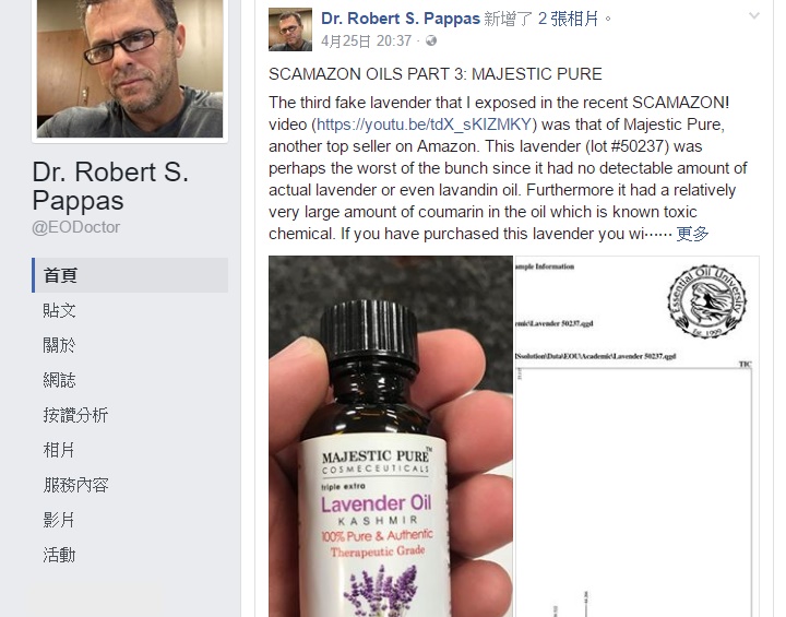 踢爆影片中有提到美國“Majestic Pure”所出的“薰衣草純精油”也一樣是 非 天 然 的 假 精 油! by 羅伯帕帕斯博士