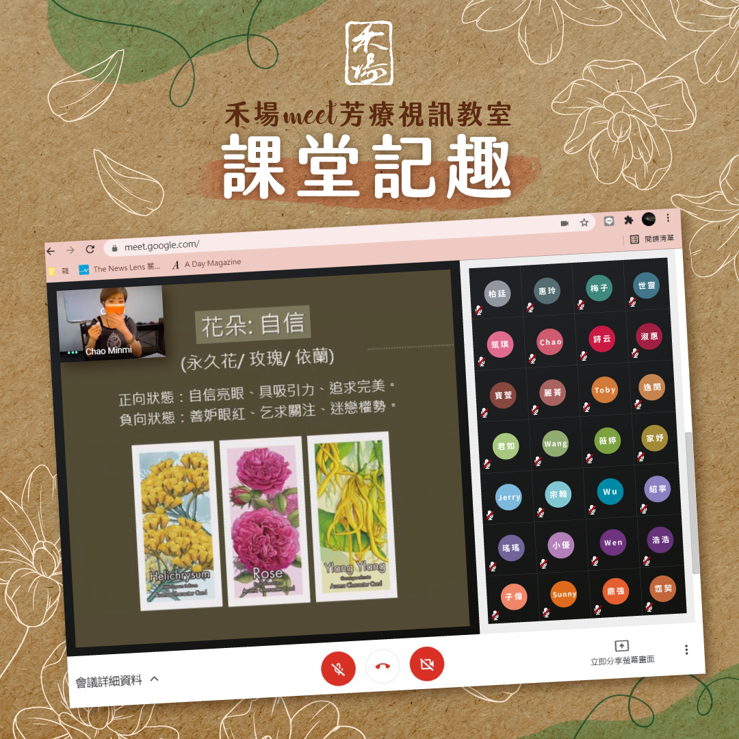線上芳療學習新體驗:Meet芳療視訊教室 花朵類及果實類人格的解析