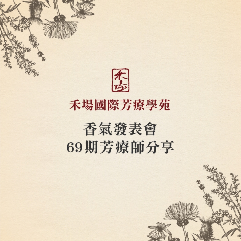 「香氣發表會的魅力:芳療師分享精油應用的奇幻之旅」 林子喬 香氣發表會就像是一個是時裝發表會的舞台,芳療師就好比是設計師,而精油就是模特兒身上的服裝,向世人展現芳療世界的奇幻與華麗! 韋維 身為芳療師我深深體會到,精油的神奇不只是在書本上,更多的驚喜是在身體上使用後,我們可以用嗅吸、薰香、和皮膚塗抹等方式,感受它給身體帶來的改變。就算是一樣的精油,每次使用後感覺都不一樣⋯所以,假如妳想真正了解精油的神奇,就從使用第一支精油開始「探險」吧⋯ 張諭坤 香氣發表會後,很多朋友或說同學開始跟我預約英式按摩體驗,又或是詢問我日常生活用油的配方,讓我覺得學芳療是件非常開心的事情。 芳療師的經驗分享與建議 陳麗玲 禾場的香氣發表會不但可聽到各式芳療的案例, 也是課堂外快速累積有效配方的場域。最特別的是, 一起重溫芳療師與個案的諮詢/追踪過程, 發現愛與關懷的可貴。