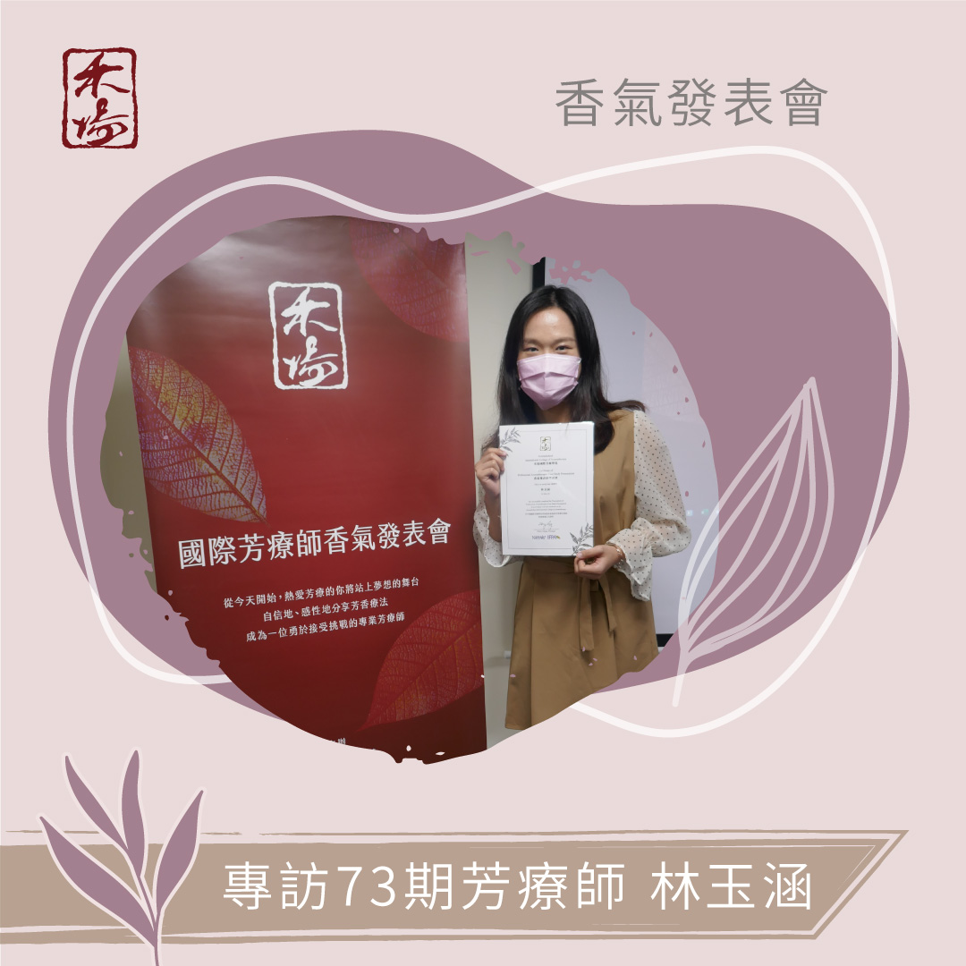 認證課程的完成並非學習的結束,而是我們專業展現的開始,最重要的除了學苑的選擇,還有課後自我消化的能力以及延伸式的學習,讓我們帶著芳療更廣泛的與各種不同的專業領域結合,成為自我專業形象的核心,而我就是將自己所學(護理專業)與情緒治療和芳療結合,提供個案更全面性的身心諮詢,以芳香療法養成我們的幸福人生。