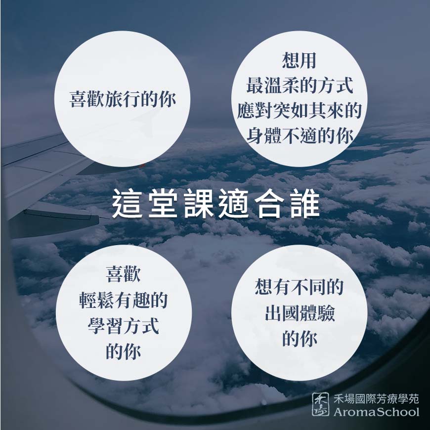 • 想要有不同的出國體驗的你:透過精油的運用,你可以在每次的旅行中獲得全新的體驗。