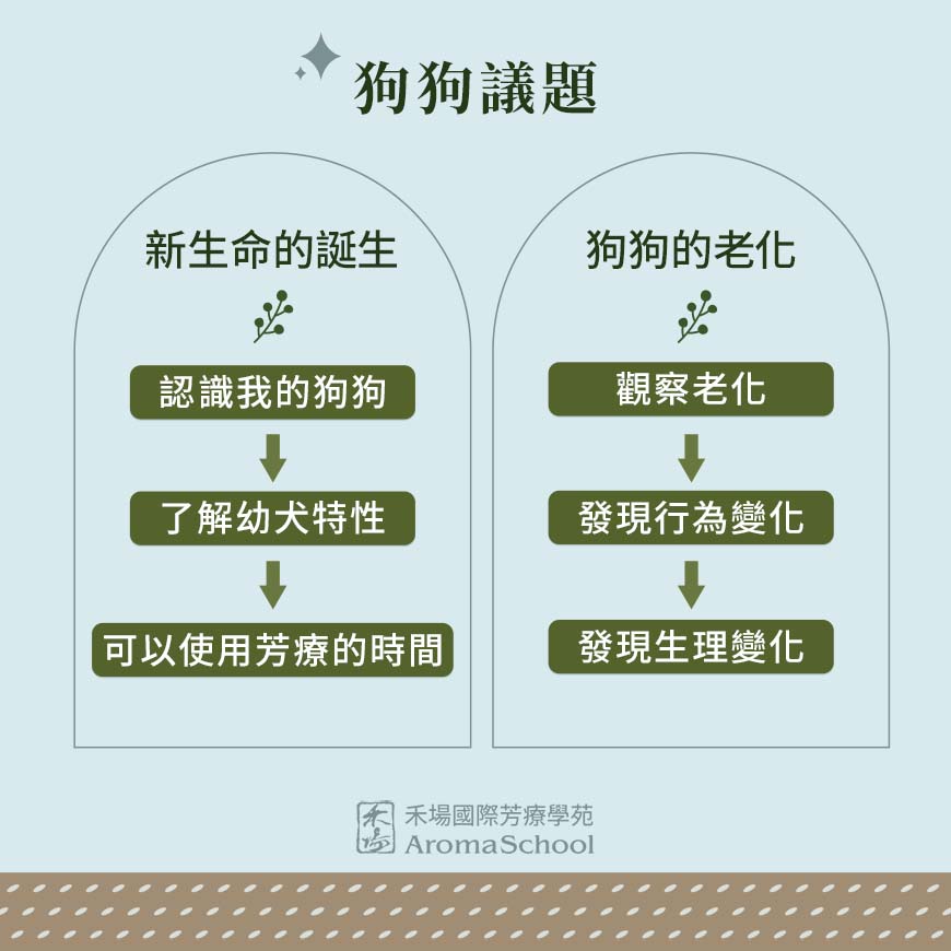 • 特色一:認識老幼犬的特性,學習在正確的時間使用正確的精油